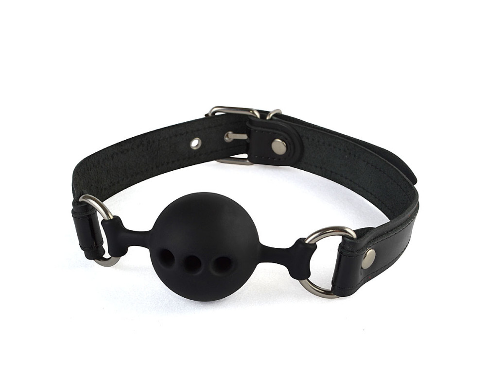Силиконовый кляп-шар с ремешками из натуральной кожи черного цвета (3390-1)