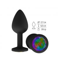 Анальная втулка силиконовая чёрная с разноцветным кристаллом (518-14 multicolored-DD)