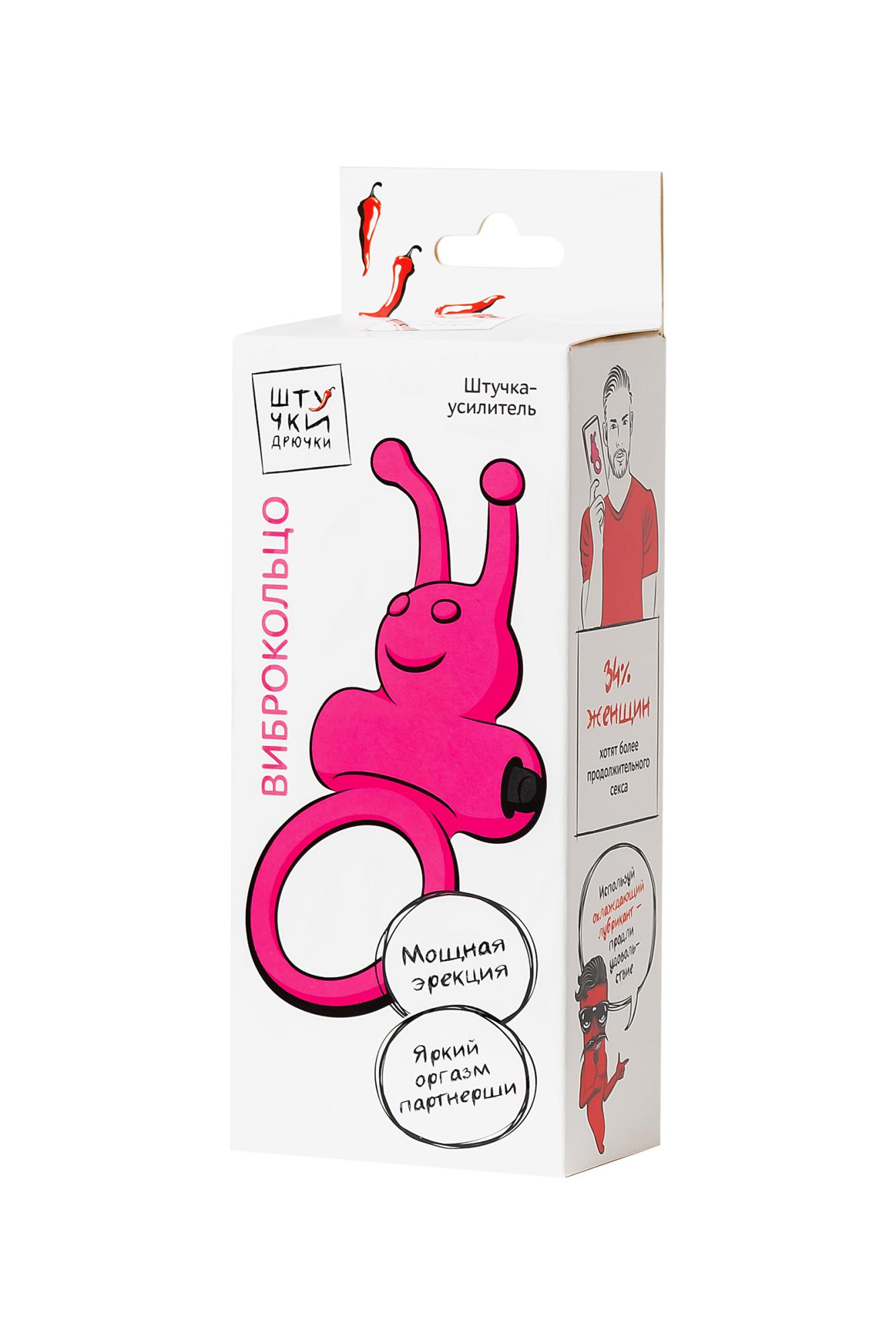 Кольцо розовое эрекционное Силиконовое виброкольцо Штучки-Дрючки - представитель нового поколения эрекционных колец. Если раньше эти круглые штучки заботились о репутации мужчин – усиливали и продлевали эрекцию, то сейчас нацелены на удовольствии партнерши. • Забавный смайлик с рожками своими нежными вибрациями выполняет чувственный массаж клиторальной зоны, доводя до наслаждения 2.0 и взрывного оргазма. • Съемная вибропуля позволяет использовать штучку как в режиме вибрации, так и без нее. • Кольцо выполнено из качественного медицинского силикона, легко растягивается и подойдет под любой размер пениса. • Влагоустойчивость еще один плюс виброкольца, после очищения его можно использовать повторно. Достаточно вынуть перед мытьем вибропулю. Наслаждайся плодами эволюции вместе с виброкольцом Штучки-Дрючки и выводи свое удовольствие на новый уровень.