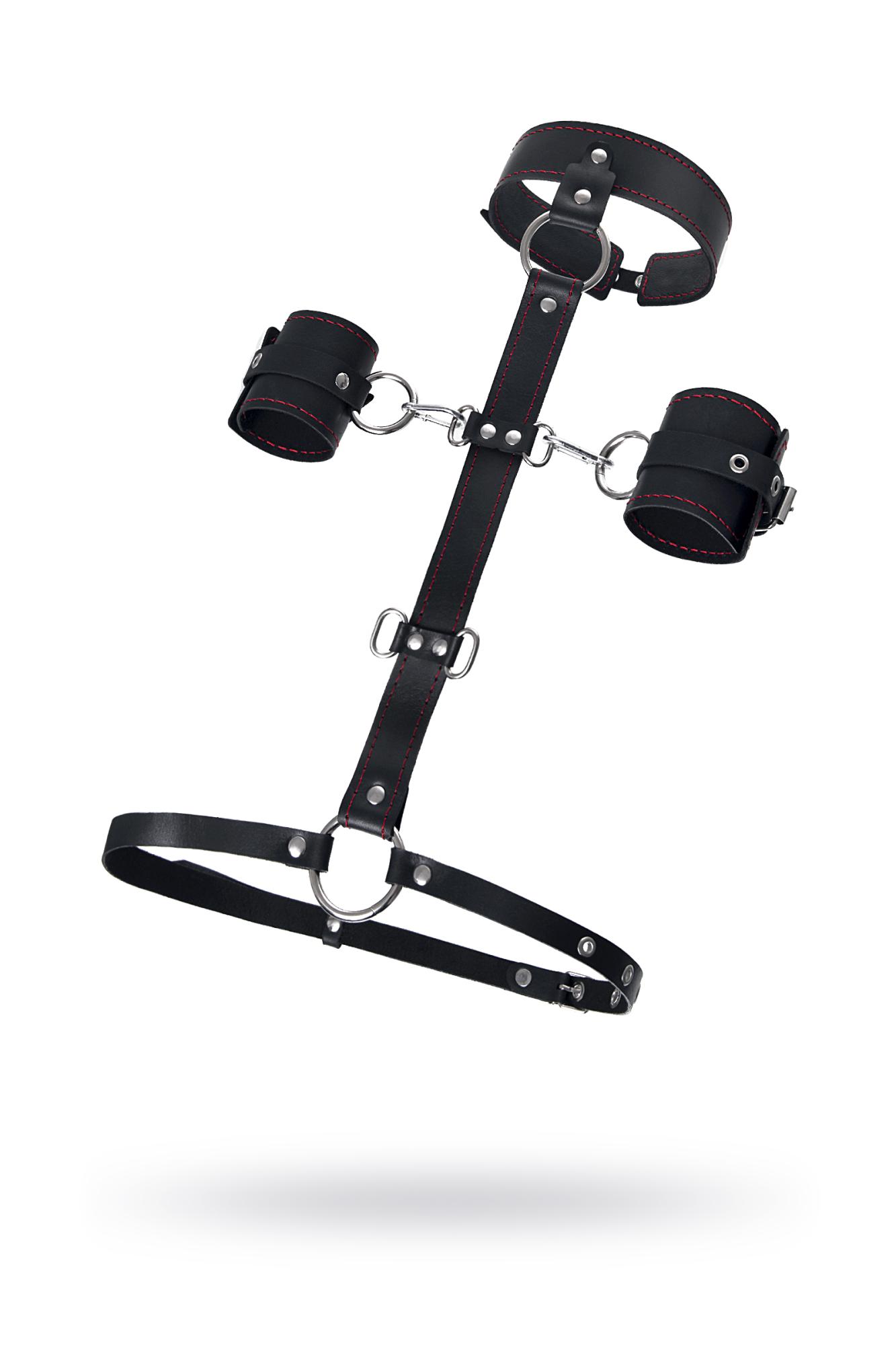Сбруя для фиксации шеи и рук Pecado BDSM, натуральная кожа, черная (УТ-00002397)